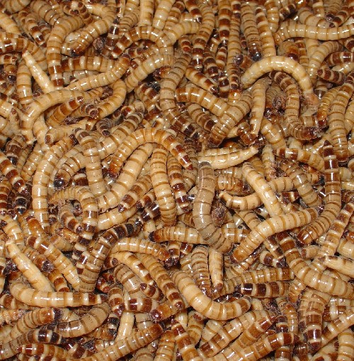 Mącznik młynarek Jeden z podstawowych pokarmow w dużych hodowlach. Trzeba jednak uważać na dużą zawartośc hityny w pancerzach. |